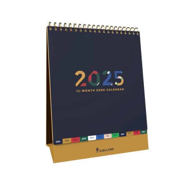 Product Description:Turn your desk into an inspiring space with these 2025 desk calendars. Featuring a 12 month calendar with tabs, international holidays and elegant silver/gold ring binding, bringing the right work/life balance to your home or workplace.